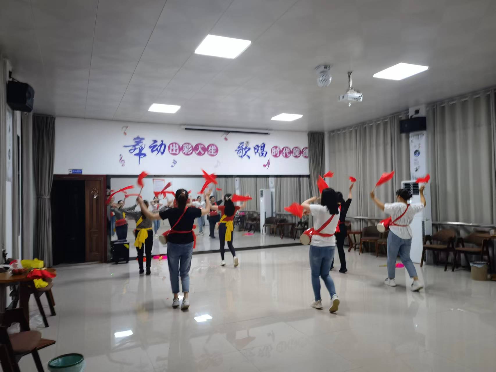 龙坪镇文化站腰鼓舞蹈排练