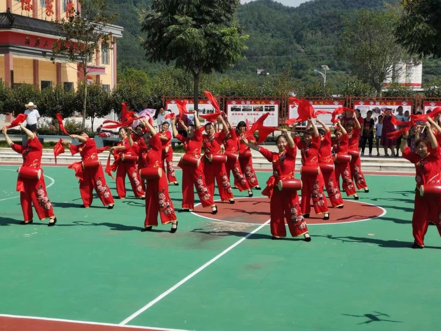 马良镇文化志愿者田英娥在鸡冠河村进行广场舞培训